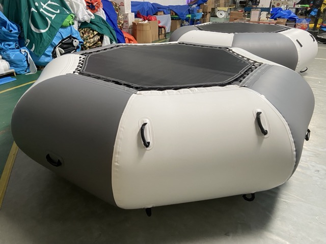 本产品是一款集水上弹跳、休闲钓鱼与游泳休憩于一体的多功能环保PVC充气平台,配备电动泵与绳梯,是水上团建、亲子娱乐及派对活动的理想互动道具。