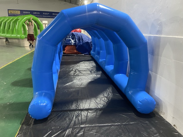 本产品是一款长达5米的拱形连续隧道装置,专为趣味障碍赛设计,通过限定1米的高度强制参与者进行匍匐穿越,是提升团建竞技性与趣味性的核心拓展道具。