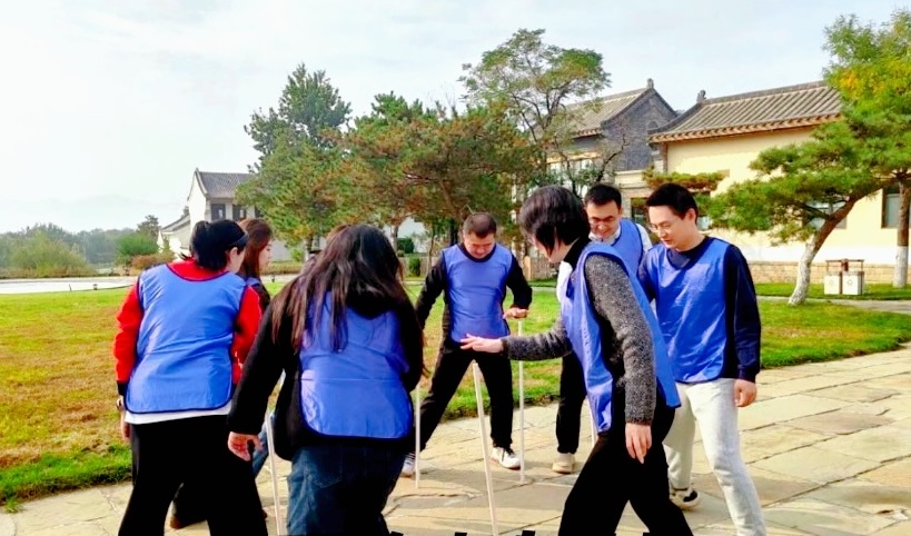 比赛以团队为单位参与,每队成员手持一根充气柱体站立成一列。比赛开始时,队员需同步松开手中柱体,迅速抓住前一位队员的柱体,在保持所有柱体不落地的前提下,以团队协作方式完成柱体转动。成功标准为:团队在柱体不掉地的情况下完成 10 次整体转动,或在限定时间内完成最多次数的柱体移动,移动次数最多的团队得分最高。