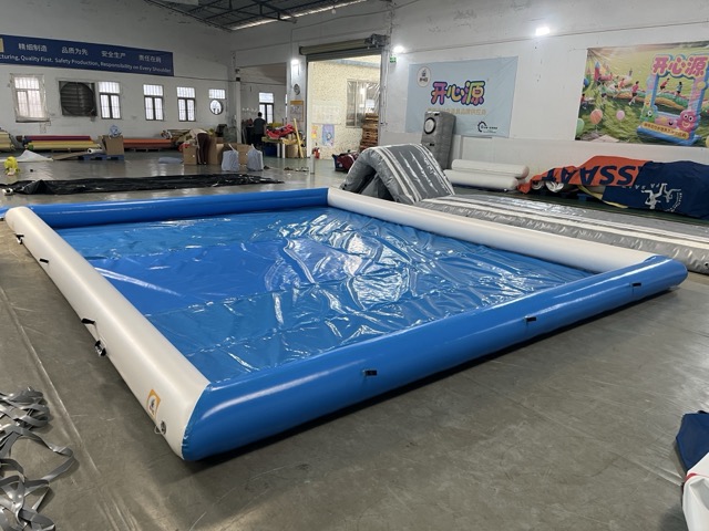 产品简介:这是一款专为户外戏水、团建及商业暖场打造的 6x5 米加厚 PVC 充气水池,蓝白配色清爽亮眼,具备强承重与优异防水性能,是营造欢乐水上娱乐氛围的基础租赁道具。