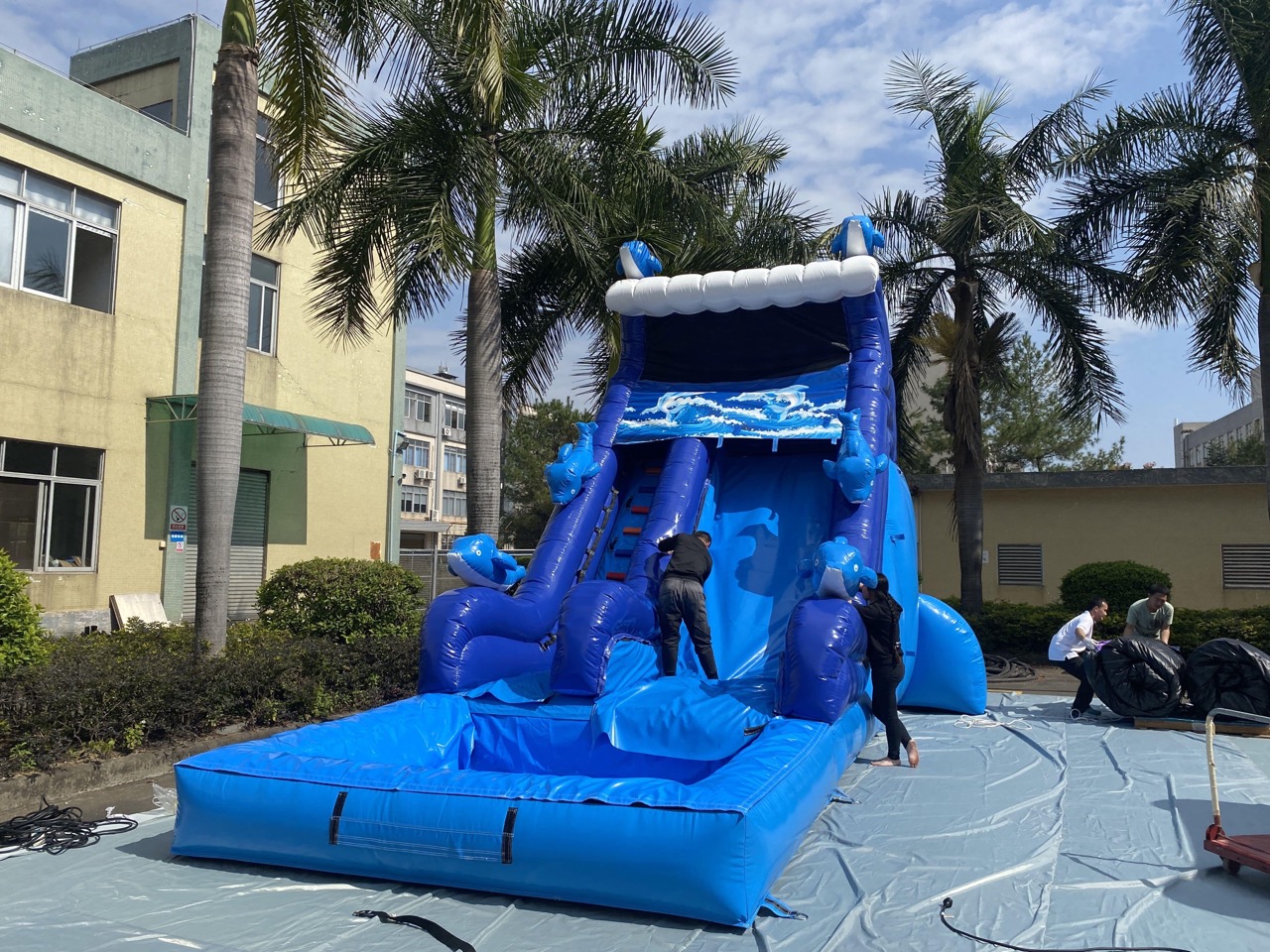 巨型海豚充气水滑梯开售|亲子水上冒险,解锁酷爽玩水新体验