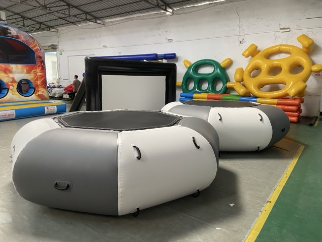 本产品是一款集水上弹跳、休闲钓鱼与游泳休憩于一体的多功能环保PVC充气平台,配备电动泵与绳梯,是水上团建、亲子娱乐及派对活动的理想互动道具。